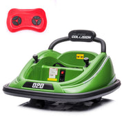 The 360° Spinning Electric Bumper Car for Kids with Remote Control - Perfect Gift for Thrilling Fun! is an extraordinary ride-on toy that will captivate your little one's attention. This rc ride on toy is designed with a 360° rotation function, making it a unique and exciting choice. It is the perfect present for any child who loves adventure and excitement.This ride-on toy features a speed of 1.86mph, allowing your child to have a thrilling and exhilarating driving experience. The colorful LED lights and built-in music player enhance the fun quotient, creating a vibrant and entertaining atmosphere. Your child will be immersed in a world of excitement as they ride around in this ride-on bumper car.Safety is a top priority with this ride-on toy. It is equipped with a safety belt and a soft bumper outside system, providing additional protection for your child. You can have peace of mind knowing that your child is safe while enjoying their ride-on adventure.The 12V dual motor ensures a powerful drive, allowing your child to navigate various terrains with ease. With a single charge, this ride-on bumper car provides 45 minutes of continuous play, ensuring endless fun for your child. The extra-wide smooth wheels and twin motors keep the ride stable and steady, ensuring a safe and enjoyable experience.This ride-on bumper car offers both manual and remote control options. Your child can take control of the vehicle themselves or you can use the remote control to guide their adventure. It provides a great opportunity for your child to develop their hand-eye coordination and enhance their social ability while driving the vehicle.The 360° Spinning Electric Bumper Car for Kids with Remote Control is suitable for both indoor and outdoor play. Whether it's on carpet, floor, tile, concrete, or other flat surfaces, your child can enjoy the thrill of riding this bumper car anywhere they please.Specification:- Material: PP, Steel- Overall Dimension: 29.9"L x 25.2"W x 17.7"H- First charging: 8 hours, regular charging: 8-12 hours- Run Time: 45 minutes (depending on the type of use)- Speed: 1.86 mph (3km/h)- Battery: 12V 4.5AH x 1- Certification: SOR, ASTM F963-17, CPSIA- Weight capacity: 66 lbsAdditional Specifications:- Theme: Cars- Contents of the package: 1x Ride-on Bumper Car, 1x Remote Controller, 1x User Manual- Type: Ride-on Bumper Car- Motor: 25W- Year: 2023- Weight Capacity: 66 lbs- Charge Time: 8-12 hours- Speed: 3km/h- Battery: 6V 4AH- Overall Dimension: 29.9*25.2*17.7 inch- Seat size: 13"W x 8"D- Style: Toys- Features 1: Safe Interactive Kids Bumper Car- Features 2: 360° Full Degree Rotation- Character Family: Bumper Car- Department: Kids- Age Level: 3-4 Years, 1-2 Years, 4-7, 8-11 Years- Brand: Mttzone- Indoor/Outdoor: Indoor & Outdoor- Driving Modes: Manual and Remote Control- Recommended Age Range: 3 to 6 years old- Color: GreenThe 360° Spinning Electric Bumper Car for Kids with Remote Control is the ultimate ride-on toy that combines excitement, safety, and adventure. Give your child the gift of thrilling fun with this incredible ride-on bumper car.