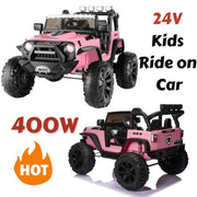 The 400W Electric 2-Seater Kids Ride-On Truck with 9AH Battery Power Introducing the 400W Electric 2-Seater Kids Ride-On Truck with 9AH Battery Power, a thrilling and adventurous ride-on toy that will bring endless joy to your little ones. Available in four vibrant colors - Pink, Black, Green, and Red, this ride-on truck is designed for children aged 3-8 years, providing them with a lifelike driving experience like never before. Key Features: Lifelike Driving Experience: This ride-on truck is equipped with one-button-soft-starting technology, light-sensing electronic power steering, and a real foot pedal acceleration, giving your child an easy and realistic driving experience. The all-metal suspension, light control, grid windshield for style, and rearview mirror add to the authenticity of the ride. Powerful 24V 200W Driving Motors: With an efficient and stable 24V rechargeable battery, this battery-powered truck can provide a long playtime after a full charge. The two 200W powerful driving motors and 14" large-sized wheels ensure a smooth and thrilling ride on various terrains, such as brick roads, asphalt roads, wood floors, and plastic runways. 2-Seater Design: This ride-on truck is designed with two spacious extended seats, allowing two kids to drive together. The cockpit space ensures complete comfort throughout the drive, while the safety belt provides protection for your little ones. The strong all-metal suspension system can bear a maximum load of 130 lbs, ensuring durability and safety. Two Driving Modes: The children's car features a soft-start button, anti-skid pedal, high speed, and low-speed options, making it easy for children to drive. The photosensitive electronic auxiliary steering wheel helps your child save energy when turning. For added safety, parents can use the 2.4Ghz wireless remote control to override the child's control and avoid potential dangers. Multiple Functions for Fun: All functions of this ride-on truck are centrally controlled for convenience. The high-bright LED headlights and searchlights make driving at night super cool. The vehicle comes with built-in music, MP3, USB port, and AUX port, providing a great number of music and stories that your kids will love. Security Configuration: Safety is our top priority. This ride-on truck is equipped with bright headlights and taillights, a parent remote control, a 2-point comfortable seatbelt, 2 lockable car doors, high chassis design, and 4 anti-skid wheels with all-metal shock absorbers. Made of high-quality non-toxic PP material, it conforms to ASTM F963 & CPSIA Children Product Certification. Product Specifications: Brand: Famous Year: 2023 Theme: Outdoor Age Level: 4-7, 8-11 Years Character Family: Family Material: PP and ABS plastic, metal Battery Type: 24Volt 8AH Motor Type: 200W * 2 Suspension: Full-Metal Suspension Seat Size: 17.8 inches Wheels Size: 14 inches Maximum User Weight: 130lbs (60 kg) Safe Speed: 3-7 km/h (4.5 mph) Charging Time: 8-12 hr Run Time: 2-2.5 hours (depending on the child's weight and speed) Music Function: AUX & USB port / Bluetooth / MP3 / Built-in music Controller Batteries: 2 AAA batteries (not included) Overall Size: 48.5 inches (L) x 34.7 inches (W) x 31.5 inches (H) Get ready for an unforgettable ride with the 400W Electric 2-Seater Kids Ride-On Truck with 9AH Battery Power. Order now and let your little ones embark on thrilling adventures!