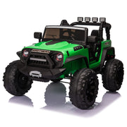 The 400W Electric Ride-On Truck for Kids with Remote Control - 24V Battery Powered is a thrilling and adventurous toy car that will bring joy and excitement to your little ones. With its two modes design, this ride-on truck offers both parent-child remote control mode and independent steering wheel and pedal power mode for children to enjoy. In the parent-child remote control mode, you can take control of the car through the remote control, allowing you to join in on the fun and ensure the safety of your child with the built-in brake function. The steering wheel and pedal power mode, on the other hand, allows children to independently operate the electric remote control ride on truck, giving them a sense of freedom and empowerment. Equipped with a powerful 24V battery and a realistic design, this ride-on truck is built for adventure. It features adjustable seat belts, bright LED headlights, lockable double doors, and impact-absorbing shock absorbers. With its traction tires, this car can conquer different terrains, providing endless possibilities for exploration and play. But that's not all! This ride-on truck also allows your little ones to connect their music through a built-in AUX outlet, Bluetooth connectivity, and a USB port. They can drive and jam to their favorite tunes, adding an extra level of excitement to their ride. The light-sensitive electronic auxiliary steering wheel of this electric toy car is incredibly sensitive, allowing even a baby with little strength to easily start the power and drive the car forward. It's designed to be user-friendly and accessible for children of all ages. With a 24V 9AH large battery and 2 x 200W dual driving force, this ride-on truck offers up to 2 hours of continuous working time. It's a high-power vehicle with a maximum/actual output of 400W, providing stronger and more consistent horsepower as your child drives the stroller. The CAROMA Ride On Truck Car is a powerful engine and interesting high-quality toy that guarantees hours of fun and excitement. It features a 2-seater design, allowing children aged 12-42 months to sit with two people, while children aged 43-96 months can sit with one person. Specifications: Brand: CAROMA Year: 2022 Theme: Trucks Age Level: 3-4 Years, 4-7 Years Character Family: Cars Battery: 24V 9AH Motor: 2 x 200W Suitable age: 37-95 months Loading capacity: 35kg Product size: 123x88x80cm (48.4x34.6x31.5inch) Speed: 3-7 km/h Charge/Use time: charge 8-12h, use 1-2h Charger: 24V Remote control: AAA 1.5V Max-loading capacity: 35KG (77LBS) Function: Light-sensitive electron assisted steering wheel R/C controls forward/backward and left/right, remote control priority Music Volume adjustment Power display Forward and backward High and low speed Wireless connection Get ready for an unforgettable ride-on truck adventure with the 400W Electric Ride-On Truck for Kids with Remote Control - 24V Battery Powered. Let your child's imagination run wild as they explore the world in their very own ride-on truck.