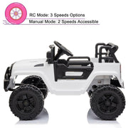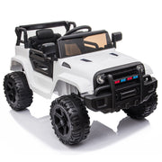 The 4x4 Double-Drive 12V Electric Car for Kids with Lights and MP3 Player is the ultimate ride-on toy for your child. This electric car is not only certified by ASTM, but it is also made with high-quality materials to ensure safety and durability. Whether your child wants to drive manually or you want to guide them using the remote control, this car provides a secure and enjoyable experience. The adjustable seat belt adds an extra layer of safety and comfort for your child.Key Features:- Certified by ASTM for safety- Easy to assemble- Built-in horn and LED lights- Equipped with an MP3 player, radio, and USB port- Supports MP3 format- 4 wheels with spring suspension for a smooth ride- Automatic reset fuse for circuit protection- 12V rechargeable battery with included charger- 2.4G remote control with 3 different speed modes and parking functionality- Easy to control for both parents and children- Adjustable seat belt for safe and comfortable use- Recommended for children aged 3 to 6 yearsPackage Includes:- 1 x Electric car- 1 x 2.4G remote control- 1 x Charger- 1 x ManualProduct Specifications:- Color: White- Material: PP Plastic, Metal- Seat Width: 12.8 inches, Seat Depth: 7.5 inches- RC Mode: 3 speed options- Manual Mode: 2 accessible speeds- Maximum User Weight: 62 pounds (28 kg)- Speed: 2-4 KM/H (2.5 mph max)- Charging Time: 8-12 hours- Running Time: 1-2 hours- Wheels: 11 inches in diameter each- Battery Type: 12V 4.5AH- Controller Battery: 2 AAA batteries (not included)- Overall Dimensions: 39.4 inches (L) x 26.3 inches (W) x 26.3 inches (H)- Recommended Age: 3-6 yearsPlease note that this product is manufactured according to US Electrical Standards and Codes. If you are purchasing this product for use outside of the United States, we cannot guarantee its compatibility with foreign electrical standards. It is recommended to use a converter or voltage transforming device at your own risk.With the 4x4 Double-Drive 12V Electric Car for Kids with Lights and MP3 Player, your child will have endless fun and adventure. Let their imagination run wild as they explore the world in their very own remote control ride on car. Order now and give your child the gift of excitement and joy!