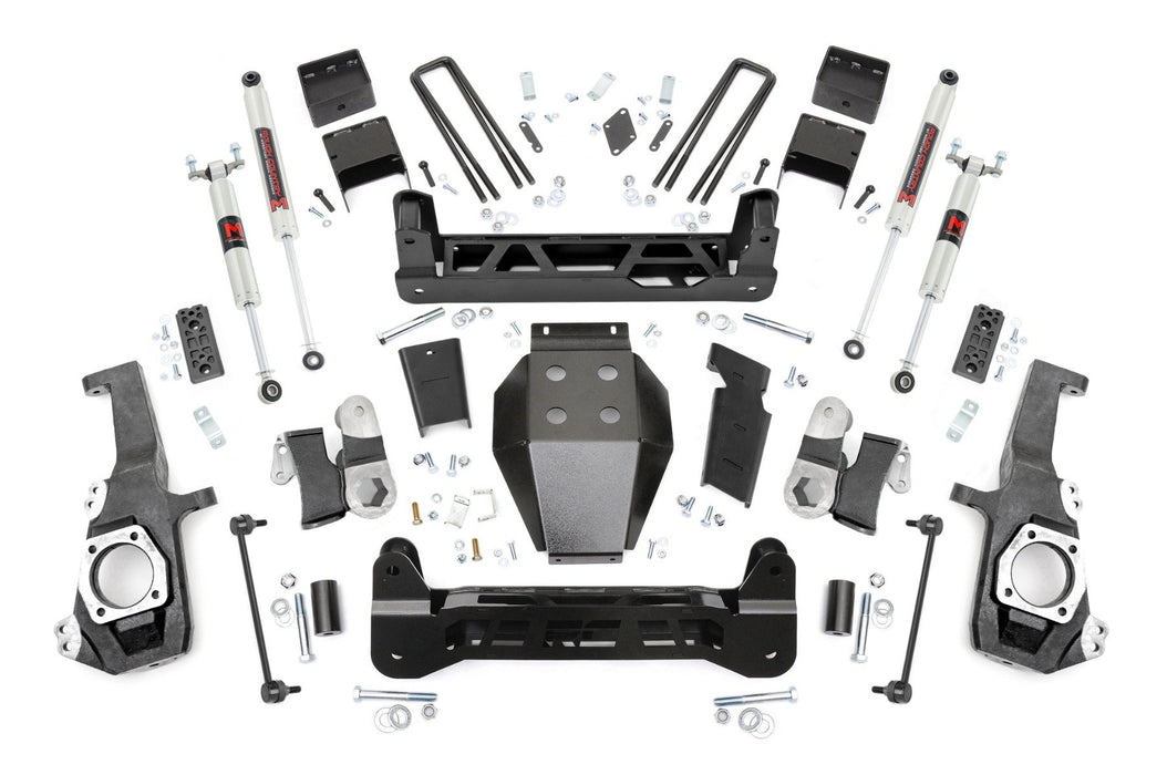 Give your HD a total transformation that complements the look of your new truck with Rough CountryΓÇÖs Non-Torsion Drop 5-inch Suspension Lift Kit. This all-inclusive kit comes with everything you need to give your truck an aggressive look and enough increased ride height to run up to 35-inch tires with a non-torsion drop design that keeps everything looking flush and clean underneath. GMΓÇÖs 2020 HD 2500 received a major redesign. Once lifted, this truck transforms into an absolute monster that will keep you smiling every time you see it. While some kits on the market leave your torsion bars hanging in plain view, Rough CountryΓÇÖs 5-inch lift features a non-torsion drop design that keeps everything tucked in and tidy, effectively giving you more ground clearance and a much cleaner look that fits in better with the overall design of your new truck. This kit also includes a set of front and rear crossmembers that are laser cut from durable US steel for a precise fit on your vehicle and feature an ΓÇ£RCΓÇ¥ logo that displays prominently at the front of the vehicle. Each kit also features lifted knuckles, a beefy differential skid plate, and a set of Rough CountryΓÇÖs N3 Nitrogen-charged shock absorbers that provide an incredibly smooth, factory-like ride quality both on and off-road. Best of all, this kit features Rough CountryΓÇÖs Lifetime Replacement Guarantee!