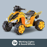 The 6-Volt Caterpillar Ride-On Toy for Toddlers: Durable and Fun Single Rider for Ages 3-5 Prepare for hours of driveway fun with the 6-Volt Caterpillar Ride-On Toy for Toddlers! This authentically-styled CAT ATV is perfect for little construction workers in training. With its sporty design, realistic features, and parent-approved safety, this battery-powered ride-on toy strikes the ideal balance between fun and functionality. Key Features: Realistic driving experience with real foot pedal acceleration Working LED headlights that light up the driveway Realistic horn and engine sounds for an immersive playtime Top speed of 2.5 MPH for exciting rides Power Trax rubber traction strip tires for a smooth ride Operates in both forward and reverse for maneuvering through tight spaces Includes a 6-volt rechargeable battery and wall charger for endless fun Product Specifications: Brand: Kid Trax Material: Plastic Size: 6 Volt Item Weight: 24 Pounds Item Dimensions: 34.75 x 24.5 x 31.75 inches Theme: Cat ATV Assembly Required: No Recommended Age: 36 months - 5 years Department: Unisex-Youth Additional Specifications: Brand: Unbranded Year: 2021 Theme: Cars Age Level: 3-5 Years Character Family: Kids Ride Caterpillar The 6-Volt Caterpillar Ride-On Toy for Toddlers is designed for riders aged 3 to 5, with a maximum rider weight of 60 lbs. Its authentic CAT ATV design will make little ones feel like real construction workers. The working LED headlights not only add to the cool factor but also provide visibility during playtime adventures. With real foot pedal acceleration, kids can experience a lifelike driving experience as they zoom around the driveway. Parents can rest easy knowing that this ride-on toy has a top speed of 2.5 MPH, ensuring safe and controlled rides. The Power Trax rubber traction strip tires ensure a smooth and stable ride, even on uneven surfaces. Plus, the ability to go in both forward and reverse allows for easy maneuvering through tight spaces and quick turnarounds. The 6-Volt Caterpillar Ride-On Toy for Toddlers comes with a 6-volt rechargeable battery and wall charger, so the fun never has to stop. Simply recharge the battery and get back to exploring the world in style. Its durable plastic construction ensures long-lasting playtime adventures, while its compact size makes it easy to store when not in use. Get ready for endless hours of fun and excitement with the 6-Volt Caterpillar Ride-On Toy for Toddlers. Whether your little one is a fan of construction vehicles or simply loves the thrill of driving, this ride-on toy is sure to be a hit. Buy with confidence and let the adventures begin!
