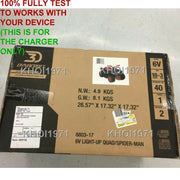 Imagine giving your little one the thrill of zooming around the backyard on their favorite Spider-Man ride-on, day after day, without ever worrying about a dead battery. Introducing the ultimate 6V AC wall charger and power adapter, specially engineered for the Dynacraft Spider-Man Light-Up Quad Ride-On (Model 8803-17). This custom-made charger is your reliable sidekick—just like Spider-Man himself—ensuring your child’s ride-on adventure is always ready to roll. Why This 6V Charger Is a Must-Have for Your Spider-Man Quad Ride-On You’ve invested in the coolest Spider-Man-themed ride-on car; now it's time to pair it with an equally impressive charger. This AC adapter is tailor-made for that exact model, delivering consistent, safe power to keep the 6V battery fully charged. No more guesswork, no more underpowered fun, and no more rushed play sessions because of a low battery. Perfect Compatibility: Designed exclusively for the Dynacraft Spider-Man Light-Up Quad Ride-On (Model 8803-17). Plug-and-play simplicity means you never have to wonder if it will work. 6V Output: Precisely engineered to deliver the right voltage for optimal battery life and performance. Your child’s ride-on car will have the stamina for extended play sessions. Smart Fuse Protection: Built-in fuse prevents power surges or spikes from damaging the battery or charger. You get peace of mind knowing that your investment is safe from electrical hiccups. Battery-Saving Charge Mode: Automatically switches to trickle-charge when the battery is full, maintaining maximum battery health and prolonging its lifespan. Long, Durable Cord: A 6-foot reinforced cable gives you the flexibility to charge from any standard outlet without straining or disconnecting while in use. Sturdy Connector: High-quality plug fits snugly into the battery port, ensuring a stable connection during the entire charging cycle. Two Exciting Color Variants to Match Your Child’s Style To make charging just as fun as riding, this 6V AC adapter is available in two vibrant color options. Choose the one that best complements your Spider-Man ride-on or your child’s personal taste: Red Charger Variant: A bright, bold hue that echoes the iconic red in Spider-Man’s suit. It’s easy to spot in your garage or playroom, so you’ll never misplace it. Blue Charger Variant: A cool, energetic shade that channels the deep blue accents of Spider-Man’s costume. It stands out against walls and outlets, making it a playful accessory. Key Specifications Input Voltage: 120VAC, 60Hz (standard home outlet) Output Voltage: 6VDC @ 500mA Cable Length: 6 feet Connector Tip: 2.1mm barrel plug (center positive) Weight: 0.4 pounds Dimensions: 2.5" x 1.5" x 1.0" Benefits for You and Your Little Superhero Every parent knows that uninterrupted playtime is golden. When your child is in superhero mode, you want them to have the energy to swing, jump, and race around. Here’s how this 6V charger delivers benefits beyond simply filling up the battery: Extended Play Sessions: With a reliable full charge, your child can ride their quad for up to 90 minutes of continuous fun. That means fewer “I’m bored” moments and more giggles and imaginative adventures. Longevity of the Battery: The smart charging feature prevents overcharging, which can shorten battery life. You’ll save money by avoiding premature battery replacements, giving you more value from your ride-on car. Safety You Can Trust: The built-in fuse and surge protection reduce risks of overheating or electrical faults, ensuring your child’s safety as they rev up their ride-on truck or car. Easy to Use: Simply plug the adapter into any household outlet, connect the barrel plug to the battery port, and let it charge. An LED indicator shows when the battery is fully charged and ready for the next race. How to Charge Your Spider-Man Quad Ride-On Park the quad ride-on on a flat surface and turn off the ignition switch. Locate the battery compartment under the seat and insert the adapter’s barrel plug firmly into the charging port. Plug the AC adapter into any nearby standard wall outlet. Watch the LED indicator: red for charging, green for fully charged. Once fully charged, unplug the adapter, close the battery compartment, and your Spider-Man ride-on car is ready for action. Why Choose Our Custom-Made Charger? Our AC adapter isn’t just another generic charger. It’s handcrafted with attention to detail, tailored specifically for your Dynacraft Spider-Man Light-Up Quad Ride-On. We understand the excitement of ride-on adventures, and we’ve built this charger to be the most reliable power companion your child will ever use. From the sturdy housing to the carefully calibrated voltage output, every aspect ensures top performance and safety. Bring Home the Power of Endless Adventures Parents and gift-givers: if you’re searching for a practical yet exciting accessory to complement the coolest ride-on on the block, look no further. This 6V wall charger AC adapter is more than just a power cord—it’s the key to unlocking uninterrupted, high-energy fun. Whether it's for a birthday, holiday gift, or just because, this charger will keep your child's ride-on engine roaring. Don’t let a drained battery slow down the Spider-Man action. Choose your favorite color variant—red or blue—and get ready to elevate every ride-on session with the reliable, safe, and efficient charging solution your family deserves. Order your 6V AC wall charger & power adapter today and watch your little hero zoom into a world of non-stop, energized adventures!