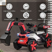 6V Battery-Powered Kids Excavator Tractor with LED Headlight, Helmet, and Rear Box