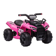 The 6V Battery Powered Ride On Quad ATV Toy with LED Headlights for Kids is the perfect adventure companion for children. With its innovative shape and eye-catching color scheme, this ride-on electric car will immediately capture the attention of young adventurers. Equipped with four wear-resistant wheels, this electric four-wheeler provides a smooth and thrilling ride, even on uneven terrains like sidewalks and gravel driveways. Encourage your little ones to spend more time outdoors and fulfill their dreams of becoming road adventurers with this exciting ride-on toy ATV!Key Features:- Working headlights for an authentic riding experience on the electric ATV- Powerful rear-wheel drive powered by 6V motors- Pedal-powered kid's ATV with a maximum speed of 1.24mph- High-quality rechargeable battery and charger included in the package- Ride-on vehicle can run for 45 minutes once fully charged- Four wide textured tires provide a smooth and enjoyable ride- Recommended for kids aged 18-36 months (under adult supervision)- Develop hand-eye coordination ability while playing- Assembly requiredProduct Specifications:- Color: Pink- Material: Steel, PP- Overall Dimension: 26"L x 17.25"W x 16.5"H- Seat Size: 11.5"L x 5.5"W x 10.25"H- Wheel Size: ?7"- Charging Time: 8-12 hours- Use Time: 45 minutes (depending on intensity of use)- Battery: 6V, 4AH- Speed: Maximum 1.24mph- Recommended Ages: 18/36 months old- Weight capacity: 44 lbs- Certification: ASTM F963-17, CPSIA- Item Label: 370-189V80PKEmbark on thrilling adventures with the 6V Battery Powered Ride On Quad ATV Toy with LED Headlights for Kids. Order now and let your little ones explore the world of outdoor play in style!