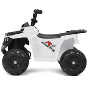 The 6V Electric Ride-On ATV for Kids - White is the perfect toy for adventurous little ones. With its cool and stylish ATV appearance, this ride-on toy is sure to be a hit with kids. It is recommended for children ages 3-6 years old and has a weight capacity of up to 55 lbs. This ATV features a 6V battery that provides a speed of 3 km/h (2 MPH), allowing kids to cruise around at a safe and enjoyable pace. The battery has a charge time of about 8-10 hours, ensuring that the fun can continue for hours on end. Equipped with headlights and built-in music, this ride-on ATV provides an immersive and exciting experience for kids. The forward/backward function and adjustable volume allow for easy control and customization. The 6V Electric Ride-On ATV for Kids - White also includes an MP3 player with an AUX input and USB port, allowing kids to connect their own devices and listen to their favorite tunes while riding. Made from brand new PP and iron material, this ATV is durable and harmless to the human body. The wear-resistant wheels with deep grooves add friction for stability, ensuring a safe and smooth ride. Not only is this ride-on ATV a source of endless fun, but it also helps children naturally develop hand-eye coordination abilities through play and laughter. It provides a healthy exercise option for kids and makes for a perfect gift. Safety is a top priority, and this ATV is ASTM certified for added peace of mind. It comes with a rechargeable battery and charger, making it convenient and easy to use. Overall dimensions of this ride-on ATV are 16" x 27" x 19.5" (L x W x H), and it weighs 11 lbs. The 6V Electric Ride-On ATV for Kids - White is a must-have toy for any young adventurer. Let your child's imagination run wild as they explore the world on their very own ATV. Get ready for hours of fun and excitement with this thrilling ride-on toy. Specifications: - Color: White - Main material: PP, iron - Overall dimensions: 16" x 27" x 19.5" (L x W x H) - Net weight: 11 lbs - Weight capacity: 55 lbs - Speed: 3 km/h (2 MPH) - Charge time: about 8-10 hours - Battery: 6V 4.5AH - Recommended for ages: 3-6 years old - Package includes: 1 x Kids ride on ATV, 1 x Charger, 1 x Instruction manual Key Features: - Cool and stylish ATV appearance - Headlights and built-in music - Forward/backward function - Adjustable volume - MP3 Player with AUX input and USB port - Easy to ride and control - Brand new PP and iron material - Durable and harmless to human body - Wear-resistant wheels with deep grooves - Provides healthy exercise and plenty of fun - Develops hand-eye coordination ability - Equipped with rechargeable battery & charger - ASTM certified for more safety