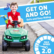 Imagine the joy and excitement on your child’s face as they climb into their very own ride-on golf cart, designed especially for toddlers and young kids ages 3 and up. This 6V Ride-On Golf Cart invites your little one to embark on thrilling adventures across your backyard or neighborhood, turning every outing into a playful expedition filled with laughter and imaginative fun. Crafted with vibrant green hues and a realistic golf cart design, this ride-on toy is a perfect gift for boys and girls who dream of becoming golf pros or simply love zooming around in style. Powered by a reliable 6-volt rechargeable battery, this ride-on golf cart reaches a maximum speed of 2 mph, an ideal pace that ensures safety while delivering plenty of fun. The manageable speed lets your child confidently navigate their mini golf course or driveway, building their motor skills and coordination as they steer forward and reverse with ease. Thanks to the smooth foot pedal drive system, children can control their speed intuitively, just like operating a real car, fostering independence and boosting their confidence. This ride-on golf cart doesn’t just move—it comes alive with engaging features that enhance the playtime experience. Built-in LED lights add a dash of excitement, illuminating the way during dusk or indoor play sessions, while authentic sound effects make every ride feel like a real golf tournament on wheels. Your child will love the interactive noises that bring the adventure to life, sparking imaginative scenarios from practice rounds to championship wins. Designed for solo fun, this golf cart comfortably seats one young driver. The spacious seat is equipped with a seat belt, prioritizing safety without sacrificing comfort, so parents can rest easy while their little champion explores. Its sturdy construction supports up to 66 pounds, accommodating growing toddlers and preschoolers alike for extended use. With product dimensions measuring approximately 23 inches wide, 45 inches long, and 39 inches tall, it fits perfectly in most backyards, driveways, or playrooms, making it the ideal compact yet thrilling ride-on toy. Beyond the cart itself, this set includes a delightful golf accessory play kit featuring clubs and balls, allowing your child to truly immerse themselves in the game of golf. Whether practicing their swing or imagining a tournament scenario, these accessories turn ordinary play into an exciting sport experience. The included cup holder adds a touch of realism and convenience, perfect for keeping a small drink close during play sessions. Parents will appreciate the durable, high-quality materials used to build this ride-on golf cart. It is engineered to withstand enthusiastic play and outdoor conditions, promising countless hours of entertainment and adventure. The rechargeable battery ensures long-lasting power for multiple playtimes between charges, making it as practical as it is fun. Features at a Glance: Vibrant Green 6V Ride-On Golf Cart designed for toddlers ages 3 and up Maximum speed of 2 mph, perfect for safe and controlled play Forward and reverse driving capabilities with easy-to-use foot pedal Realistic LED lights and sound effects create an immersive golf experience Includes golf clubs and balls for hours of sporty imagination Comfortable seating with a secure seat belt for safety Support for children up to 66 lbs Built-in cup holder for added convenience Rechargeable 6V battery for extended playtime Compact dimensions (approx. 45” L x 23” W x 39” H) ideal for both indoor and outdoor fun For parents and gift-givers searching for a ride-on toy that blends excitement, safety, and imaginative play, this 6V Ride-On Golf Cart is an unbeatable choice. It encourages active outdoor play and physical activity while nurturing your child's love for sport and adventure. This golf cart empowers your child to explore their surroundings with confidence, all while pretending to be on a professional golf course. Imagine the pride as your little one proudly drives their own car, complete with lights, sounds, and all the golfing accessories needed to recreate the magic of a golf outing. Transform your backyard into a playful golf course where your child can drive, swing, and score points in their own unique style. The engaging features and safe design make this ride-on golf cart a favorite among toddlers and parents alike, ensuring that playtime is both thrilling and worry-free. The green color sparks vibrant energy and blends with the outdoors, enhancing the feel of a real golf adventure. Whether it’s a birthday, holiday, or just a surprise to brighten a day, gifting this ride-on golf cart means giving the gift of adventure, skill development, and joyful memories. Watch as your child’s imagination takes flight, driving their first ride-on truck with a side of sporty excitement and endless smiles.