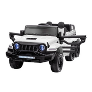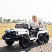 The 6WD Kids Ride-On Truck with Remote Control and Lockable Doors - 24V Power Wheels Toy is the perfect ride-on for your little racers who are ready to start driving like the grownups. With its powerful 24V motor and realistic driving features, this small yet mighty car truck toy will provide endless hours of fun and excitement. Powerful 24V & Realistic Driving Adjustable 5-point seat-belt for added safety Bright LED headlights for enhanced visibility Lockable doors and windshield for off-road style Traction tires to ride on different terrains Manual & Parent Control Mode Let your child drive manually or use the remote control to safely guide them Remote control features forward, backward, and steering functions 3-speed choice and stop function for added control 6-Wheel Drive & Long-lasting Battery Life Equipped with 6 motors for great power and 6-wheel drive capability Conquer any terrain without hindrance Compared to other 6V and 12V products, our 24V battery provides longer riding time Choose Your Music & Built-in Children's Stories Built-in AUX outlet allows kids to plug in media devices Bluetooth connectivity for more freedom of choice Storytelling function brings more fun to your children Additional Specifications Color: White Material: PP, Iron Dimension: 49.2" x 28.8" x 25.2" (L×W×H) Battery Type: 24V Charge Time: 8-10 hours Run Time: +1.5 hours Run Speed: 4-6 KM/Hour Weight Capacity: About 130 lbs Package Included 1 x Electric Ride-On Trucking Car 1 x Remote Control 1 x Charger 1 x Manual 1 x Tool Kit Note: The 24 volt ride on car can only fit one child over 3 years old. If you have any problems after receiving the package, please contact us. Thank you for your confidence. First time using the remote control, you need to match the remote mode. Here's how: Turn off the power of the car Press and hold the "M" button of the remote control After 3 seconds, the first indicator light starts flashing Release the "M" button Turn on the car power The car will start Bluetooth mode The first indicator light of the remote control becomes long light state The remote control is successfully connected