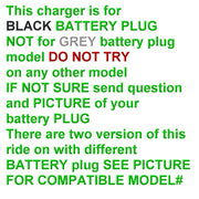 Unlock endless adventures and keep the thrill going strong with the WALL CHARGER AC Adapter designed specifically for the KT1220WM Marvel Avenger Captain America Power Quad ride-on toy. This essential power accessory is crafted to perfectly match the Black Battery Plug model, ensuring your child's ride-on truck remains energized and ready for action every day. Whether your little hero is cruising around the driveway or conquering imaginary battlegrounds, this charger provides the dependable power they need to keep the fun rolling. Imagine the excitement on your child’s face as their favorite Marvel Avenger ride-on truck springs to life, fueled by a charger built for flawless compatibility and safety. This is not just any charger – it's a tailor-made power solution designed to fit seamlessly under the seat of the ride-on vehicle, making it easy and convenient to plug in and recharge. Say goodbye to downtime and hello to continuous playtime! Why This Charger is a Must-Have for Your Ride-On Truck Perfect Fit for Black Battery Plug Models: This charger is custom-designed to work exclusively with the Black Battery Plug variant of the KT1220WM Marvel Avenger Captain America Power Quad. If your ride-on truck has a grey battery plug, simply reach out to get the right charger version. This ensures optimal compatibility and performance. Reliable Home Wall Charger: Featuring an AC adapter designed for household power outlets, it transforms your wall socket into a powerful source that keeps the 6V ride-on battery charged efficiently and safely. Easy to Use and Store: The charger’s compact design allows for hassle-free connection under the seat, keeping the power source discreet and your child’s ride-on truck looking clean and ready to go. Fast, Consistent Charging: Engineered to replenish the battery quickly, this charger minimizes waiting time so that your child can get back to the exciting adventures in no time. Compatible with Multiple Ride-On Variants: Works seamlessly with the KT1220WM, KT1220, and KT1220TG models featuring Blue, Red, Black Trim, and Grey Seats from Kid Trax and Pacific Cycle collections, giving you flexibility if you own more than one ride-on toy. Benefits to You and Your Child By keeping this charger handy, you are investing in uninterrupted playtime, empowering your child’s imagination and physical activity. The Marvel Avenger Captain America Power Quad ride-on is a thrilling experience on its own, but with the right charger, you ensure your child’s heroics never take a break. The confidence that comes from a fully charged ride-on truck fuels more daring drives, creative role-play, and joyful smiles. Parents will appreciate the peace of mind offered by a charger that’s built for their child’s specific ride-on model. There’s no guesswork involved, no fear of incompatible parts, and no concern about damaging the battery or ride-on truck. Instead, you get reliable power, long-lasting battery health, and the convenience of a charger that is as ready for adventure as your child is. Who Is This Charger For? Parents of Marvel Avenger Ride-On Enthusiasts: Perfect for families with children who love their Captain America Power Quad and want to keep it charged and ready for thrilling outdoor play sessions. Gift-Givers Seeking Practical Accessories: A thoughtful and useful gift addition for birthdays or special occasions, this charger ensures the ride-on toy stays powered and enjoyable. Families with Multiple Ride-Ons: Compatible with several KT1220 series models and color trims, it’s an excellent choice to have on hand for various ride-ons in your household. Key Features at a Glance Model Compatibility: KT1220WM, KT1220, KT1220TG – Marvel Avenger Captain America Power Quad Battery Plug Type: Black Battery Plug version (contact seller if Grey Battery Plug) Power Supply: AC wall charger adapter for standard home outlets Voltage: Designed for 6V rechargeable batteries Placement: Connects under the seat of the ride-on truck for convenience Packaging: Bulk packaging in a protective plastic bag How to Ensure You Get the Right Charger Since there are two versions of this ride-on truck with different battery plugs (Black and Grey), it's important to verify your battery plug type before purchase. The plug connects under the seat, so simply open the seat compartment and check the color of your ride-on’s battery plug. If you’re unsure, don’t hesitate to send a photo of your battery plug, and you will be guided to the correct charger version. This guarantees you receive the perfect charger without delay, allowing your child’s adventures to continue uninterrupted. Keep Your Ride-On Truck Ready for Heroic Journeys The Marvel Avenger Captain America Power Quad ride-on truck inspires courage, creativity, and outdoor fun. With this dedicated wall charger AC adapter, you provide the power source your child’s vehicle needs to keep up with their imagination. No more interrupted play or frustrating dead batteries – just plug in, charge up, and watch your child zoom off on their next daring mission. Give the gift of endless energy and unstoppable fun. Whether it’s a birthday surprise, a holiday gift, or an essential accessory for your family’s ride-on fleet, this charger is your go-to solution for power and performance. Don’t let a drained battery slow your child down – keep them moving with this reliable, custom-made wall charger designed for the KT1220WM Marvel Avenger Captain America Power Quad ride-on truck.