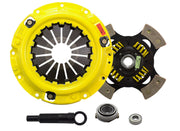 FC2-HDG4 kit features ACT's most popular Heavy Duty pressure plate. ACT Heavy Duty pressure plates use exclusive diaphragm design to increase clamp load, reduce deflection and maximize clutch life. All diaphragms endure a four-stage, heat-treating process for unparalleled performance. ACT pressure plates have precision cover stampings to provide rigidity and consistency. ACT's 4-pad spring-centered race disc features a spring-center to properly damp torsional vibrations for quieter operation and resist failure even under harsh conditions. ACT spring retainers utilize wraparound spring windows and thicker retainer stampings to provide spring support, reduce stress concentrations, and increase strength and reliability. With the 4-pad spring-centered race disc, engagement is harsher, but shifting is faster. ACT's 4-pad spring-centered race disc is well-suited for smaller disc sizes in smaller engines.