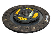 3000301 is a performance street disc and the most popular disc purchased. It features premium organic materials with high copper content for better heat transfer. Performance street discs allow for quicker shifting and smooth engagement. These discs feature a reduced marcel for faster shift action to complement ACT pressure plates. ACT spring-centered assemblies use bushings and cone springs similar to factory clutch discs. This creates frictional dampening, which improves clutch life and reduces noise. Quiet operation with increased strength and reliability.