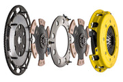 T3R-F03 race, twin disc kit offers twice the number of disc surfaces for better wear, heat capacity and long life compared to single disc kits. These kits use a proprietary Positive Lift Floater System design, which results in quiet operation with no floater rattle and no posts to wear. ACT twin disc kits undergo an exclusive four-stage, heat-treating process on all diaphragms. The ACT twin disc features the ability to adjust for disc wear and provides equal disengagement for discs. ACT's 6-pad rigid race discs are made with high quality, ceramic friction materials. The chrome-moly hub is heat-treated for strength and durability. The lightweight, rigid design allows for quicker shifts and trouble-free service. All ACT twin disc kits include a CNC-machined and dynamically balanced flywheel to ensure trouble-free installation and operation. ACT twin disc kits include a pressure plate, two discs, a floater, flywheel and alignment tool. Some kits may include a pilot bearing and release bearing.
