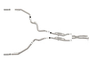 This cat-back exhaust system is constructed of 3 IN mandrel-bent 304 stainless steel tubing for maximum strength and durability. Finishing off this exhaust system are dual 12 IN diameter polished 304 stainless steel clamp-on exhaust tips. The tips features a laser etched aFe POWER logo for a unique style. This system produces a powerful sound unleashing all available horsepower and torque. Utilizing a factory style flange and hangers this system is a direct bolt-on system, which requires no cutting or modifications for a hassle-free installation. This system incorporates factory style exhaust valves which use the factory exhaust valve motors (not included). The valves help regulate, direct and control the flow of exhaust gases by opening, closing, or partially obstructing passageways depending on throttle position for maximum performance. State-of-the-art computer-aided design technology is utilized for precise vehicle fitment. 100% MIG-Welded for race-proven strength and durability.