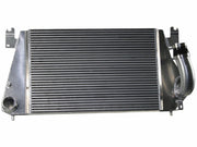 Bladerunner Intercoolers represent the next generation of intercoolers. The Bladerunner intercoolers utilize a 3 in. bar and plate design that out performs OE style tube and fin core designs. The end tanks are constructed out of 3/16 in. TIG welded aluminum plate tanks that incorporate three multi-directional vanes that efficiently direct air flow through the entire core for maximum cooling. The Bladerunner intercooler also comes with 4 1/8 in. pre-tapped ports for easy gauge installation as well as other auxiliary input options. Tested at 200psi which is perfect for the high boost applications. In recent testing the Bladerunner intercooler produced a 200 deg. temperature drop and a 100 deg. EGT drop as well as increasing air flow by 30 percent. Dont waste your time and money on modified factory intercooler. Invest in the aFe Bladerunner intercooler. the most sophisticated intercooler design on the planet.