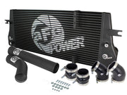 Bladerunner Intercoolers represent the next generation of intercoolers. The Bladerunner intercoolers utilize a 3 IN bar and plate design that out performs OE style tube and fin core designs. The end tanks are constructed out of 3/16 IN TIG welded aluminum plate tanks that incorporate three multi-directional vanes that efficiently direct air flow through the entire core for maximum cooling. The Bladerunner intercooler also comes with 4-1/8 IN pre-tapped ports for easy gauge installation as well as other auxiliary input options. Tested at 200psi which is perfect for the high boost applications. In recent testing the Bladerunner intercooler produced a 200 deg. temperature drop and a 100 deg. EGT drop as well as increasing air flow by 30 percent. Dont waste your time and money on modified factory intercooler. Invest in the aFe Bladerunner intercooler. the most sophisticated intercooler design on the planet.