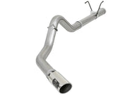 Gain 22% more exhaust flow for improved performance and sound. This DPF-back exhaust is 100% hand MIG-welded, mandrel bent, 4" 409 stainless steel tubing for strength and durability and is finished off with a 5" intercooled, polished exhaust tip to reduce EGT's. This system utilizes factory mounting locations, and includes high quality hardware for a quick, hassle-free installation. Stainless Steel Construction This DPF-Back is constructed of 100% hand MIG-welded, mandrel bent, 4" 409 stainless steel tubing for strength and durability. 5" Diameter Exhaust Tip: Finishing off this exhaust is a 5" diameter slash cut, stainless steel tip with intercooling vents to reduce EGT's at the tailpipe and are badged with laser-cut aFe POWER plates riveted on. Installation is a Snap This system uses factory mounting locations providing stability and hassle-free installation. High quality OE style band clamps are used for a complete 360 degree sealing surface. Flow and Performance This exhaust system is constructed of 4" mandrel-bent 409 stainless steel tubing for maximum flow and durability. Smooth transition bends allow for low turbulence, increasing horsepower, torque and lowering EGT's.