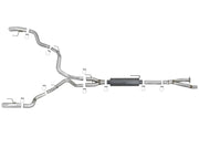 aFe is proud to introduce the MACH Force-Xp "Hi-Tuck" Cat-Back exhaust system for the Ford F-150 Raptor with the V6-3.5L EcoBoost twin-turbo engine. This exhaust system outflows the factory exhaust. This cat-back exhaust is constructed of 3" into 3-1/2" mandrel-bent 304 stainless steel tubing and comes complete with free-flowing high temp metallic black powder-coated muffler, OE-style bayonet hangers, band clamps and necessary hardware for a hassle-free installation. The smooth curves and increased diameter of this exhaust system helps remove restriction and keeps exhaust gas flowing smoothly for increased horsepower and torque. The system is finished off with a dual 304 stainless steel, single wall slash cut tips for an aggressive style. Hi-Tuck: This exhaust system is finished off with Hi-Tuck tips that are developed to give you extra clearance during extreme angle climbs or descents. Gives the truck an "Old School" traditional look. Installation is a Snap: This MACH Force-Xp exhaust system use all factory mounting locations providing stability and a hassle-free installation. Leak-Free Seal: High quality band clamps are used for a complete 360-degree sealing surface eliminating leak paths. Aggressive Sound: A free-flowing stainless steel high temp 24" length muffler is used to absorb high pitch tones producing a powerful sound and unleashing all available horsepower and torque. Dual 4" Tips: Finishing off this system are dual 4" diameter, 304 stainless steel tips. This is a dual rear exit system. Y-Merge Assemblies: The Y-merge assemblies evenly distributes exhaust pulses and minimizes exhaust drone to enhance the tone. Perfect Fit: OE-style bayonet hangers are used to maintain a stable pipe location during high vibration and high heat conditions. The Bayonet tip holds the hanger bushing in place for an OE style fit that does not change with time.