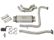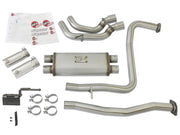 aFe Power introduces an all new Rebel Series dual middle-side exit exhaust system for the 2016-2017 Nissan Titan with V8-5.6L engine. This Rebel Series cat-back is designed with dual black exhaust tips that exit in front of the rear passenger tire for a unique, aggressive look. The tips come with unique laser-etched aFe Power logos on the side and are constructed from stainless steel for durability. The exhaust system is constructed from 2-1/2" MIG-welded, mandrel bent stainless steel tubing for maximum flow, increased horsepower and torque. This kit uses a free-flowing muffler to absorb high pitch tones producing a powerful sound. The performance cat-back exhaust system includes necessary hardware and clamps for a has sle-free install, with no cutting required making it a true bolt on system.