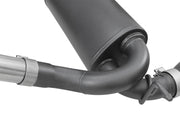 aFe's Rebel Series, dual black tip cat-back exhaust system for your 2007 - 2018 Jeep Wrangler (JK) with the V6-3.8L / 3.6L engine. This Rebel Series system is constructed with 2-1/2" mandrel bent 409 stainless steel tubing for improved exhaust flow. Utilizing factory mounting locations, the bayonet tip hangers ensure the Rebel Series exhaust has an OE-style fit and stays put under any driving conditions. A certified craftsman hand MIG welds the system for durability and longevity. High quality band clamps and hardware to provide a quick, hassle-free installation with no modifications necessary. Dual 4-1/2" angle-cut, black stainless steel exhaust tips are badged with laser-cut aFe POWER plates to finish off the Rebel Series exhaust system for the perfect combination of performance, value and style. Additional Performance: Compatible with aFe Power Twisted Steel Down-Pipe Loop Relocation Pipe (48-48022-HN or 48-48022-HC) to optimize your performance gain. Mild Tone A free-flowing, stainless steel, high temp metallic black, rear muffler assembly, engineered for the smoothest sounding performance available. A 14" long, round front muffler assembly is used to absorb the high pitch tones. The rear, 18" long, oval muffler is used to producing a powerful sound and unleashing more horsepower and torque potential. Dual 4-1/2" Black Exhaust Tips: This dual rear-exit system features 4-1/2" dia. high temp metallic black, angle-cut, rolled, stainless steel exhaust tips w/ laser-cut aFe POWER badge for a custom-styled look. Installation is a snap: This Rebel Series exhaust system uses all factory mounting locations providing stability and a hassle-free installation. Perfect Fit: OE-style bayonet hangers are used to maintain a stable pipe location during any driving conditions. The bayonet tip holds the hanger bushing in place for an OE style, long lasting fit. Leak-Free Seal: High quality band clamps are used for a complete 360-degree sealing surface.