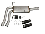 Introducing an all new Rebel Series Dual Center Exit Cat-Back exhaust system for the Jeep Wrangler (JK) with V6-3.6L/3.8L engine. This unique Rebel Series exhaust system is designed with dual center exit tips for an aggressive look. The Tips are 4-1/2" with aFe power plates and constructed out of stainless steel for durability. This performance cat-back exhaust is constructed of 2-1/2" MIG-welded mandrel-bent stainless steel tubing. The smooth curves and increased diameter of this exhaust system helps remove restriction and keeps exhaust gas flowing smoothly for increased horsepower, torque and throttle response. In testing, this cat-back exhaust system added an astounding +9 horsepower and +14 lbs. x ft. of torque as verified by our in house dyno. This exhaust system comes complete with a 22" free-flowing muffler, OE style bayonet hangers, band clamps and all hardware necessary for a hassle-free installation.