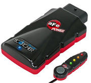 The aFe POWER SCORCHER BLUE Power module is the next generation of Plug and Play electronic module technology. It is the fastest way to safely gain significant horsepower, torque and improve drivability without modifying or leaving any trace on the Engine Control Unit (ECU). The SCORCHER BLUE features an LED control switch for in-cabin, on-the-fly power adjustments with different preset modes. With Bluetooth connectivity you can tap into your iOS or android device to make power adjustments, custom tune different power modes, view gauges for engine parameters, upgrade to the latest revision, measure acceleration times and more. The SCORCHER BLUE Power module increases turbo boost and overall vehicle performance producing double-digit power gains on our in-house dyno. Designed with factory style connectors, it easily connects to engine sensors for a quick and simple install. The LED control switch can be routed through the firewall into the cabin or connect to the module via Bluetooth with the smartphone app. In-Cabin, on-the-fly power adjustments can be made to accommodate your driving needs. Select one of four power settings on the in-cab LED control switch or control the module remotely. This Power module has 4-power settings loaded and identifiable with the LED light on the switch or smartphone app. Stock (Green), Sport (Yellow), Sport+ (Orange) and Race (Red). The SCORCHER BLUE module is Bluetooth 4.0 capable and can connect to most iOS or android devices. The Bluetooth connectivity allows the control of the module while being in the vehicle cabin without running any wire through the firewall. The aFe POWER SCORCHER BLUE app is free on the APP Store and Google Play store and allows the smartphone device to become a handheld remote for the module. It also displays turbo boost gauges (TMAP), allows you to customize each power mode, upgrade to the latest revision and even measure 0 to 60 ¼ mile times.