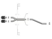 2-1/2" 304 Stainless Steel Construction: This axle-back exhaust system is constructed of 2-1/2" mandrel-bent 304 stainless steel tubing for maximum strength and durability.Dual 4-1/2" Diameter Carbon Fiber Exhaust Tips: Finishing off this exhaust system are dual 4-1/2" diameter carbon fiber 304 stainless steel clamp-on exhaust tips. The Tip features an aFe POWER logo for a unique style.Installation: Requires cutting factory exhaust. Utilizing factory style hangers this system mounts directly to factory mounting locations for a hassle-free installation.Integrated Mitered Merge Collector: A mitered merge collector is used to decrease turbulence and increase exhaust velocity resulting in increased horsepower, torque and improved throttle response.Computer-Aided Design: Utilizing state-of-the-art computer-aided design technology, this exhaust system is designed for custom, high tolerance factory fitment.MIG-Welded: 100% MIG-Welded for race-proven strength and durability.Note: Some cutting is required, see instruction sheet for further information.Emissions Disclaimer: This product does not require a CARB EO#.aFe POWER exhaust systems are engineered and manufactured in our Corona, California facility.