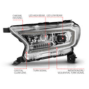 ANZO 19-23 Ford Ranger Full LED Projector Headlights w/ Initiation & Sequential - Chrome