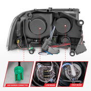 Crystal Headlight Set, Clear Lens, Black Housing, Pair, 1 pc., . Guaranteed To Improve Your Vehicles Appearance. Rigorously Tested For Fit And Function. Simple Plug And Play. No Modifications Required. Easy Installation Using Common Hand Tools. Uses Stock Mounting Locations And Hardware. D.O.T. Compliant To S.A.E. Standards. Sold As A Pair.