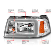 ANZO 2001-2011 Ford Ranger Crystal Headlights w/ Light Bar Chrome Housing