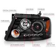 ANZO 2004-2008 Ford F-150 Projector Headlights w/ Halo and LED Black G2