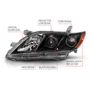 ANZO 2007-2009 Toyota Camry Projector Headlight Black Amber