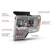 ANZO 2009-2014 Ford F-150 Projector Headlight Chrome Amber