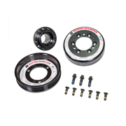 This is an ATI super damper for the Cadillac ATS-V. The factory rubber crankshaft damper can deflect at high RPM and greater than stock power levels which can eventually lead to excessive crankshaft vibration. In extreme cases this can lead to deflection and dislodging of the reluctor wheel.