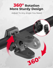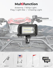 The whip mount with 12 pins, each can be rotated 30 degrees, you only need to loosen one bolt to find the best angle to install the flag, whip light, chasing light or light bar according to your needs.