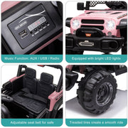 The BBH-016 Dual Drive 12V 4.5A.h 2.4G Remote Control Pink Off-Road Vehicle is the ultimate ride-on toy for adventurous kids. With its vibrant pink color and off-road design, this car is sure to turn heads as your child cruises around the neighborhood.Key Features:- ASTM-Certified for safety and easy assembly- Automatic reset fuse for protection circuit, ensuring a safe and reliable ride- Built-in AUX outlet allows kids to plug in media devices and enjoy their favorite music while driving- Soft start technology prevents sudden acceleration or braking, keeping your child safe and comfortable- Rechargeable 12V battery with included charger provides hours of playtime- 2.4G remote control with 3 different speed modes allows parents to safely guide their child or let them drive manually- Adjustable seat belt ensures a secure and comfortable ride- Recommended for single riders ages 3-6Specifications:- Color: Pink- Material: PP Plastic, Metal- RC Mode: 3 Speed Options- Manual Mode: 2 Speeds Accessible- Maximum User Weight: 66lb / 30kg- Charge Time: 8-12 Hrs.- Run Time: 1-2 Hrs.- Speed: 1.9-2.6 mph- Battery Type: 12V 4.5AH- Controller Battery: 2 x AAA Batteries (not included)- Overall Dimensions: (41.9 x 28.2 x 28.1)" / (106.43 x 71.63 x 71.37)cm (L x W x H)- Recommended for Single Rider Ages 3-6Package Includes:- 1 x Electric Car- 1 x 2.4G Remote Control- 1 x Charger- 1 x ManualWith the BBH-016 Dual Drive 12V 4.5A.h 2.4G Remote Control Pink Off-Road Vehicle, your child will have endless fun and excitement. Whether they're exploring the backyard or going on imaginary off-road adventures, this remote control ride on car is the perfect companion for their imaginative play. Get ready for thrilling rides and unforgettable memories with this stylish and powerful off-road vehicle.