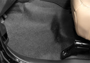 100 polypropylene ultra tough work surface.Looks and feels like carpet. Slip and skid resistant fiber surface. Custom molded die cut.Bleach,battery acid,oil and gas wash right off. Designed for exterior use will not absorb water. Comes with limited life time warranty. Installs quickly no need to remove seat bracket or center console.