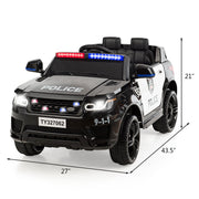 The Black 12V Electric Ride-On Toy Car for Kids with Remote Control and Music is the perfect gift for your child. This fantastic and cool ride-on police car comes in a sleek black color, giving it a modern and stylish look. With its powerful electric motor, your child can ride around in style and have endless fun. Brand: COSTWAY Color: Black Material: PP, Iron Size: 43.5"(L) X 27"(W) X 21"(H) Type: Ride On Car Style: Modern Power Source: Electric Weight: 27.5lbs Assembly Required: Yes Firmness: Firm Number of Items in Set: One-Piece Assembly Status: Assembly Required Department: Kids Indoor/Outdoor: Outdoor With two modes of control, this remote control ride on car promotes parent-child interaction and allows children to play freely. The remote control feature gives parents the ability to steer the car, ensuring the safety of their child. Children can also take control and drive the car themselves, enhancing their independence and motor skills. This multifunctional ride-on car is equipped with headlights, music, a microphone, and a volume controller. The headlights illuminate the path ahead, adding to the excitement of the ride. The music feature allows children to listen to their favorite tunes while cruising around. The microphone lets them sing along and showcase their musical talents. The volume controller ensures that the sound level is suitable for your child's enjoyment. The ride-on car is designed to mimic a real police car, with colorful flashing lights, a siren, and police signs. This adds to the sense of adventure and makes your child feel like a cute little cop while driving it. Your child will have endless fun pretending to be on a mission and patrolling the neighborhood. Safety is a top priority with this ride-on car. It is designed with a slow start-up feature, ensuring a smooth and safe acceleration. The doors are equipped with safety locks, providing extra security during the ride. The seat is fitted with a safety belt, keeping your child securely in place. You can have peace of mind knowing that your child is safe while enjoying their ride-on car. Let your child's imagination run wild with the Black 12V Electric Ride-On Toy Car for Kids with Remote Control and Music. Get ready for hours of fun and adventure with this amazing ride-on car!