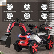 The Bluetooth Helmet Electric Excavator Toy Car for Kids: A 2-in-1 Exciting Playtime Experience!Introducing the ultimate ride-on toy for adventure-seeking kids - the Bluetooth Helmet Electric Excavator Toy Car for Kids! This innovative toy combines the thrill of a car and the excitement of a truck, providing a 2-in-1 playtime experience that will keep your little ones entertained for hours on end. Let your child's imagination run wild as they transform their living room, backyard, or even the beach into their very own construction site. With its flexible front-end loader, this ride-on excavator allows kids to operate the machine and pretend they're real construction workers. The sturdy front-end loader can perform a variety of tasks, and the manually operated driver's seat gives small builders the flexibility to drive and shovel sand or snow, making it suitable for year-round outdoor use.But that's not all - this toy car also features a rear storage space, allowing your little engineers to transport their favorite toys wherever they go. Whether they're heading to the sand or the grass, they can take a bunch of toys on the go and have endless fun exploring new territories.Safety is always a top priority, which is why this excavator toy is designed with a backrest and anti-rollover devices to prevent sudden car starts and keep children from rolling backwards. The textured wheels provide a wide base for added stability and better grip, ensuring a safe and secure ride-on experience.Playing with this excavator is a breeze! Your child can easily control the bucket with a simple push and pull of their small hand. As they do so, the small arm moves up and down and the bucket goes in and out, allowing them to shovel up big piles of dirt, sand, or snow. It's a fun and interactive way for them to engage in imaginative play and develop their motor skills.But the fun doesn't stop there - this toy car comes with a range of additional features and specifications that make it even more exciting:- Early Education: This ride-on toy promotes early education by stimulating your child's imagination and creativity as they pretend to be construction workers.- Lights: The excavator is equipped with lights that add a touch of realism and enhance the overall play experience.- Forward and Backward: Your child can easily maneuver the excavator in any direction they desire, whether it's moving forward or backward.- Manual Digging Arm: The manual digging arm allows your child to control the movements of the excavator's arm, adding an extra layer of interactive play.- 380 Motor: The powerful 380 motor ensures smooth and efficient operation, providing your child with a thrilling ride-on experience.- 6.4v Battery: The excavator is powered by a 6.4v battery, which provides a long-lasting and reliable source of energy.- Shovel After the Basket: The shovel after the basket allows your child to easily collect and transport materials during their construction adventures.- Push the Handle Can Be Controlled Steering: The handle can be pushed and controlled to steer the excavator, giving your child full control over their playtime experience.- Comes with a Child Invasion Safety Helmet: Safety is paramount, which is why this excavator toy comes with a child invasion safety helmet to ensure your child's head is protected during play.Product Specifications:- Brand: Unbranded- Main Color: Red- Product Size: 37.4*17.7*32.3in- Product Weight: 15.87lb- Load-bearing Capacity: 90LB- Speed: 3-5km/h- Applicable Age: 2-4 Years Old- Battery Type: 6v4.5ah- Charging Time: 6-8 Hours- Use Time: 1 Hour- Power: 12-16w- Motor Speed: 16000Get ready to embark on an exciting adventure with the Bluetooth Helmet Electric Excavator Toy Car for Kids. Whether your child is digging up dirt, transporting toys, or simply enjoying a thrilling ride, this ride-on toy is sure to provide endless fun and entertainment. So, let their imagination soar and watch as they create their very own construction masterpiece!