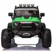 Product Description The Bluetooth Remote Control 24V Electric Kids Ride On Jeep with USB - Made in the USA Introducing the Bluetooth Remote Control 24V Electric Kids Ride On Jeep with USB - Made in the USA, a powerful and thrilling ride-on toy that will provide endless fun and adventure for your little ones. This remote control ride on Jeep is equipped with advanced features and specifications to ensure a safe and enjoyable experience for children aged 1-8 years. Let your kids embark on exciting journeys with this high-quality ride-on Jeep that is designed to withstand various terrains and provide hours of entertainment. Powerful 24V 200W Driving Motors Efficient and stable 24V rechargeable battery Long playtime after a full charge 2PCS 200W powerful driving motors 14" large-sized wheels with wear resistance and slip resistance Drive on different terrains such as brick road, asphalt road, wood floor, plastic runway, and more Provides a good driving experience for your kids 2-Seater Kids Ride-on Truck Spacious extended two seats and enough cockpit space Allows two kids aged 3-8 years to drive together Ensures complete comfort throughout the drive Equipped with safety belts for added protection 4 wheels equipped with a strong all-metal suspension system Bears a maximum load of 130 lbs Multiple Functions Ride for Fun All functions are centrally controlled High-bright LED headlights and searchlights for a cool driving experience at night Built-in music, MP3, USB port, and AUX port Provides a great number of music and stories for your kids Ideal Gift for Boys & Girls Our kids ride-on toy car is made of durable material and equipped with multiple functions that can enrich your little one’s life and enhance the parent-child relationship. It will be an amazing gift for kids at birthdays, Christmas, New Year, and other special occasions. Product Specifications Brand: Unbranded Year: 2022 Custom Bundle: No Theme: Cars Recommended Age Range: 1-8 Age Level: 1-2 Years, 3-4 Years, 4-7 Years, 8-11 Years Character Family: Toy Story Battery: 24V 9AH Motor: 2 x 200W Suitable Age: 37-95 months Loading Capacity: 35kg Product Size: 123x88x80cm (48.4x34.6x31.5 inches) Speed: 3-7 km/h Charge/Use Time: Charge 8-12 hours, Use 1-2 hours Charger: 24V Remote Control: AAA 1.5V Max-Loading Capacity: 35KG (77LBS) Suitable Age: 37-95 Months Function Light-sensitive electron-assisted steering wheel R/C controls forward/backward and left/right, remote control priority Music Volume adjustment Power display Forward and backward High and low speed Wireless connection Warning: The toy is to be assembled by an adult. In the unassembled state, it may contain potentially hazardous sharp points, sharp edges, and small parts, so please keep it out of baby's reach. Children must drive this product accompanied by adults. Not to be used in traffic. Be sure to read the operating instructions and warnings in the manual carefully.