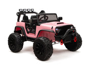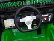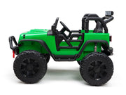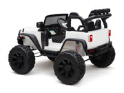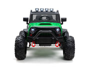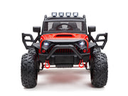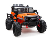 The only Children's Electric Off-Road Vehicle 24V 4X4 Ride-On Toy with 2 Seats and Parental Remote Control that is BOOM BOOM the Buffalo APPROVED. Exclusively brought to you by Magic Cars. This is the perfect present for little boys and girls who love adventure, excitement, and the famous Boom Boom the Buffalo with over 100 million views. This ride-on toy is made of durable materials, with real rubber tires, real leather seat, ensuring its longevity and sturdiness. The powerful 24 volt dual motors and 24V battery provide continuous power and enable the vehicle to reach speeds of 6.5 mph, making it suitable for children aged 3-8 years. Plus, it has a working stereo and horn! With its 2.4g remote control, parents can have full control over the rc ride on truck, allowing them to participate in the fun-filled moments with their child. Alternatively, children can also take control of the vehicle themselves using the foot pedal to control ideal speeds. The ride-on truck is equipped with a range of exciting features including an MP3 player, USB port, FM radio, bright LED headlights, horn, Bluetooth, and a bottle holder. The front storage bin provides ample space for your child to bring along their favorite toys on their adventurous journeys. The ride-on truck features a large 20" wide seat, providing comfort and enough space for two children under 6 years old or one child aged 6-9 years old. The two seats are equipped with two single safety belts to ensure the safety of the little riders. The truck's overall size is 49.6"*38.6"*34.6"(L x W x H) and has a maximum weight capacity of 106 lbs, making it suitable for various age ranges and sizes. The powerful 24 volt dual motors, combined with the large-sized rubber tires, enable the ride-on truck to conquer various terrains with ease, providing an exhilarating off-road experience. Each wheel has an independent bearing, ensuring smooth steering and maneuverability. The ride-on truck is delivered in two packages due to logistics restrictions. Please be patient and wait for both packages to arrive. Once you have received both boxes, follow the installation video and user manual to assemble the truck. Key Features: [ Build-in Fun ] - MP3 player, USB port, FM radio, bright LED headlights, horn, Bluetooth, and bottle holder [ Large 20" Seat Wide ] - Overall size: 48"*37"*31"(L x W x H), Seat Width: 20" [ Manual & Parental Control ] - 2.4g remote control for parental control, foot pedal for child's operation [Strong Dual Motors ] - 24V battery, 2 24 volt powerful motors, large-sized big real rubber tires Specifications: Year: 2023 Weight Capacity: 150 lbs Remote Control: 2.4g Remote Control Charging Time: 8-12 Hours Play Time:1-3 hours depending on terrain Number of seats: 2 Package Included: 1 x Boom Boom Approved Electric Ride-On Truck 1 x Magic Cars Wireless Remote Control 1 x Charger 1 x Manual