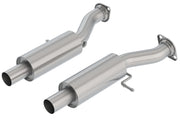 For those of you who purchased a Borla(r) S-Type system, PN 140791 or 140791BC and want to step it up to the ATAK(r) sound, replace the front mufflers with this set of 2.75" diameter ATAK(r) mufflers. Each muffler is built from premium T-304 stainless steel, superior to T-400 series knockoffs (such as 409) to give you the best in performance and durability. Ultra-smooth mandrel bends ensure maximum flow & power, and precision computer numerical control (CNC) manufacturing ensures an accurate fit. As with all Borla(r) products, it is covered by the famous Million Mile Warranty.