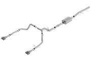 EXCEPT ZR2 & AT4X models. Factory Split Rear Exit vehicles ONLY. This system features unique Borla(r) carbon fiber tips with bright centers. Add Adapter 60706 for Crew Cab with Standard Bed (6' 7") 157" Wheelbase vehicles. System features Borla(r)'s aggressive ATAK(r) muffler and Polyphonic Harmonizer Technology which utilizes patented units that contain pipes of different diameters and lengths to create multiple exhaust notes that harmonize to deliver a clean, rich, full-bodied sound. Replace the Polyphonic Harmonizer behind the muffler in the ATAK(r) system with muffler 60679 to attain the "S-Type" sound level (quieter than ATAK(r)). Borla(r) Cat-Back(tm) and Axle-Back exhaust systems feature patented straight-through and multi-core technology designed to unleash hidden horsepower. Increased exhaust velocity adds power, driving excitement, fuel economy, and the distinctive Borla(r) Sound of Power respected by motoring enthusiasts everywhere. Each system is built from premium T-304 stainless steel, superior to T-400 series knockoffs (such as 409), to give you the absolute best in performance and durability. Ultra-smooth mandrel bends ensure maximum flow& power, and precision computer numerical control (CNC) manufacturing ensures an accurate fit. Best of all, Borla(r) stands behind every system with a Million-Mile Warranty. Just what you'd expect from the world's most experienced (and most winning) exhaust brand.