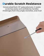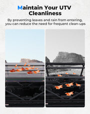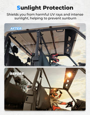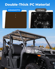 KEMIMOTO hard roof is made of 1/5" polycarbonate, which has high strength and is scratch-resistant. It can withstand the challenges of jungle, tree branches, and mud, making it suitable for year-round use.