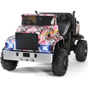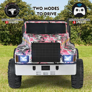 Camo Pink Ride-On Tractor with Trailer, Dump Bed, RC Control, and Bluetooth - 3 Speed Options