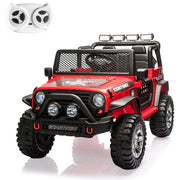 The CLARFEY 12V Battery Powered RC Off-Road Jeep for Kids with LED Lights is the ultimate ride-on toy for adventurous young drivers. With its vibrant red color and sleek design, this off-road jeep is sure to turn heads. Whether your child is navigating rough terrain or cruising around the neighborhood, this remote control ride on jeep will provide hours of fun and excitement. Key Features: 2 Seater: This jeep can accommodate two children, making it perfect for siblings or friends to ride together. Remote Control: The included remote control allows parents to take control of the jeep's movements, ensuring a safe and enjoyable ride. LED Lights: The jeep is equipped with LED lights, adding a cool and stylish touch to the overall design. Product Specifications: Speed: 1.2-5mph Assemble Required: Yes Size: 46.5"(L) x 30.5"(W) x 30"(H) Color: Red Age Level: 3-4 Years, 4-7 Years Brand: CLARFEY Driving time: Around 40 minutes-1 hour Item weight: 42lbs Battery: 12V7AH Recharge time: 8-12 hours Weight capacity: 110lbs Recommended Age Range: 3-8 year old Let your child's imagination run wild as they embark on exciting adventures with the CLARFEY 12V Battery Powered RC Off-Road Jeep for Kids with LED Lights. Order yours today and watch as your little one explores the world in style!