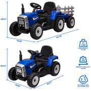 The CLARFEY 12V Ride-On Tractor with Trailer and Remote Control for Kids - Music and Fun Included! is the perfect ride-on toy for your little one. With its vibrant blue color and truck-themed design, this tractor will surely capture your child's imagination and provide hours of endless fun. Key Features:- Battery Powered: This rc ride on tractor is powered by a 12V/4.5AH battery, allowing for a thrilling and adventurous playtime experience.- Remote Control: The included remote control allows parents to take control of the tractor, ensuring the safety of their child while still allowing them to enjoy the ride.- Music and Fun: Equipped with built-in music and sound effects, this ride-on tractor will keep your child entertained and engaged as they explore their surroundings.Product Specifications:- Color: Blue- Material: Polypropylene, Ethylene Vinyl Acetate, Rubber- Age Level: 3-4 Years, 4-7 Years- Weight: 27lbs- Weight Capacity: 66lbs- Car without trailer dimensions: 33.27"W x 20.67"H- Car with trailer dimensions: 53.74"W x 20.67"H- Battery: 12V/4.5AH*1- Speed range: 1.9-5 mph- Recharge time: 8-12 hours- Theme: Trucks- Recommended Age Range: 3-8 yearsLet your child's imagination run wild as they embark on exciting adventures with the CLARFEY 12V Ride-On Tractor with Trailer and Remote Control. Whether they're pretending to be a farmer or hauling goods in the trailer, this ride-on toy will provide endless hours of entertainment. Get ready for a fun-filled and thrilling ride-on experience like no other!