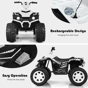 Costway 12V Kids ATV Quad Ride On Car with LED Light & Music - White