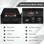 The Costway 12V Kids ATV Quad Ride On Car with LED Lights, Music, and USB - Black is the ultimate ride-on toy for kids. With its cool ATV design, it is sure to ignite the enthusiasm of boys and girls alike, making it their favorite toy for playtime adventures. This electric ride-on quad ATV is not only fun, but also easy to operate, allowing kids to have an unforgettable driving experience.One of the key features of this ride-on ATV is the high/low speed switch and forward/reverse switch, which gives kids the freedom to choose their preferred driving mode. Whether they want to go fast or slow, move forward or reverse, this ATV can do it all, providing them with endless fun and excitement. To enhance the driving experience even further, there are several built-in music and stories that will keep kids entertained and dispel any boredom.The Costway 12V Kids ATV Quad Ride On Car with LED Lights, Music, and USB - Black is not just about fun and entertainment, but also about safety. It features advanced slow start technology, ensuring a smooth and stable start, so you don't have to worry about your kids being scared or in danger. This ATV is designed to be driven on various surfaces, including wood floors, cement grounds, rubber tracks, and even the beach, allowing your kids to explore and have fun wherever they go.In addition to its impressive performance, this ride-on ATV also offers convenience and versatility. It comes with a built-in USB slot and Bluetooth function, allowing you to connect smart devices and play your kids' favorite music, stories, and more. The bright LED headlights not only add to the fun, but also light up the surroundings in the darkness, ensuring a safe and enjoyable ride.The Costway 12V Kids ATV Quad Ride On Car with LED Lights, Music, and USB - Black is made with selected materials to ensure reliable usage. It is ASTM certified, guaranteeing enhanced reliability and safety. With its sturdy construction and wear-resistant wheels, this ATV is built to last and provide your kids with endless hours of fun and adventure.Specifications:- Color: Black- Material: PP, Iron- Dimension: 42''x25.5''x29''(LxWxH)- Net Weight: 36.4 lbs- Weight Capacity: 77 lbs- Speed: 2.8-5 km/h (1.7-3 mph)- Battery: 12 V / 7AH- Charger: 12 V- Charging Time: 8-12 Hours- Running Time: 1-2 Hours- Suitable Age: 3-7 Years OldPackage Includes:- 1 x Kids ATV Quad Ride on Car- 1 x Adapter- 1 x User ManualThe Costway 12V Kids ATV Quad Ride On Car with LED Lights, Music, and USB - Black is the ideal toy to accompany your kids on their adventures. Whether it's for a birthday or Christmas gift, this battery-powered quad ATV is sure to bring joy and create cherished childhood memories. With its high-quality craftsmanship and ASTM certification, you can trust in its reliability and safety. Get ready to embark on thrilling ride-on adventures with this amazing ATV!