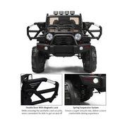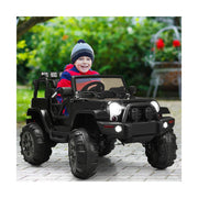 The Costway 12V Kids Ride On Truck Car with Remote Control, MP3 Music, and LED Lights in Black Get ready for an adventure with the Costway 12V Kids Ride On Truck Car with Remote Control, MP3 Music, and LED Lights in Black. This electric ride-on toy is the perfect gift for every child who loves to have fun and explore. Powered by two motors and a 12V 7AMP battery, this truck car provides a thrilling driving experience. With its unique design and realistic car details, your kids will be captivated by its cool appearance. Key Features: Cool appearance that attracts children's eyes MP3 Player: equipped with AUX input, USB port & TF card slot, connect your device to play music or stories, making the ride more enjoyable Soft start function for gradual acceleration and reliable braking Spring suspension system for a super smooth ride Parental remote control mode & battery operate mode 2.4 GHZ bluetooth remote control for easy control Forward & reverse functions with 3 speeds on remote control for adjustment Double door with magnetic lock Bright front & rear LED lights for added visibility Comfortable seat with multi-point safety belt and large space to sit and play Wear-resistant and explosion-proof wheel Portable design with built-in handle for easy movement A perfect gift for children, providing healthy exercise and plenty of fun Naturally develop hand-eye coordination ability in play and laughter Adjustable volume design Product Specifications: Color: Black Main Material: PP + Iron Overall Dimensions: 46.5''x31''x29''(LxWxH) Net Weight: 35 lbs Weight Capacity: 66 lbs Speed: 3-6 km/h Charge Time: about 8-12 hours Battery: 12V 7AHx1 Motor: 12Vx2 Recommended for ages: 3-7 years old Certification: UL With a 2.4 GHZ bluetooth remote control, you can easily control the remote control ride on truck car and ensure the safety of your child. The portable design with a built-in handle allows for easy movement, making it convenient to take the ride-on truck car with you wherever you go. So why wait? Give your child a ride-on adventure with the Costway 12V Kids Ride On Truck Car with Remote Control, MP3 Music, and LED Lights in Black. Order now and let the fun begin!