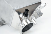 CSF worked closely with its strategic manufacturing partner PWR and Local R&D Partner Studio RSR on the development of the "Level-Up" Charge-Air-Cooler Manifold. The relationship with PWR offers CSF access to exclusive cutting edge Formula 1 grade technology, while Studio RSR offers expertise in real world race experience and hands-on mechanical knowledge of the S58 platform. The manifold is made from the highest grade billet aluminum. Each part is CNC machined with the highest precision and TIG welded to form a single piece charge-air-cooler intake manifold. The CSF manifold is capable of achieving the highest levels of performance and withstanding extreme boost levels. The ultra high performance liquid-to-air F1 grade core is made by PWR. This Bar & Plate core is pressure tested to 120 psi to ensure it will withstand the high boost levels motorsports race teams can throw at it. Feedback from the community has shown the OEM core (crimped onto plastic end tanks) is prone to failure starting at just 27 pounds (psi) of boost pressure.